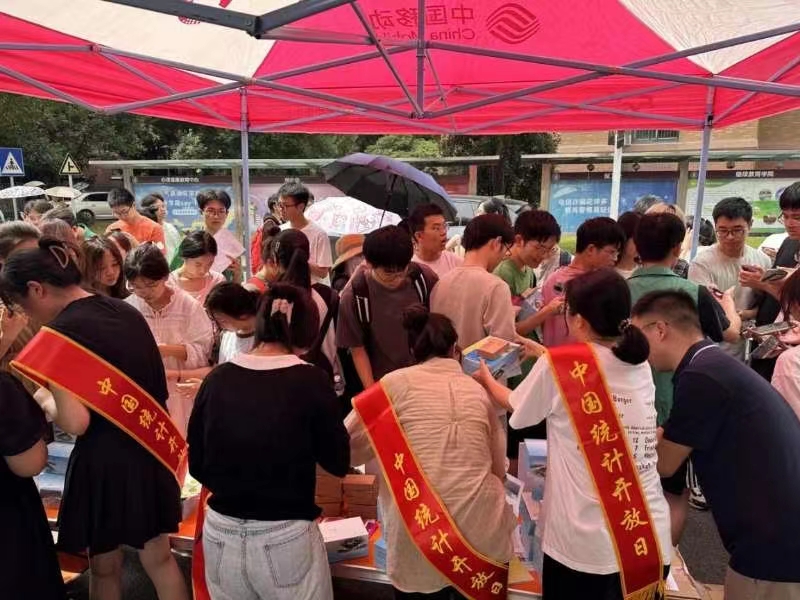 活动现场气氛热烈,主办方精心布置了主题横幅和宣传展板,通过播放统计调查宣传片、发放宣传资料、开展现场咨询等多种形式,对社会各界普遍关注的居民收支调查、物价房价涨跌、调查失业率等统计话题做了专业解答,让师生更好地了解统计、走近统计、感受统计。