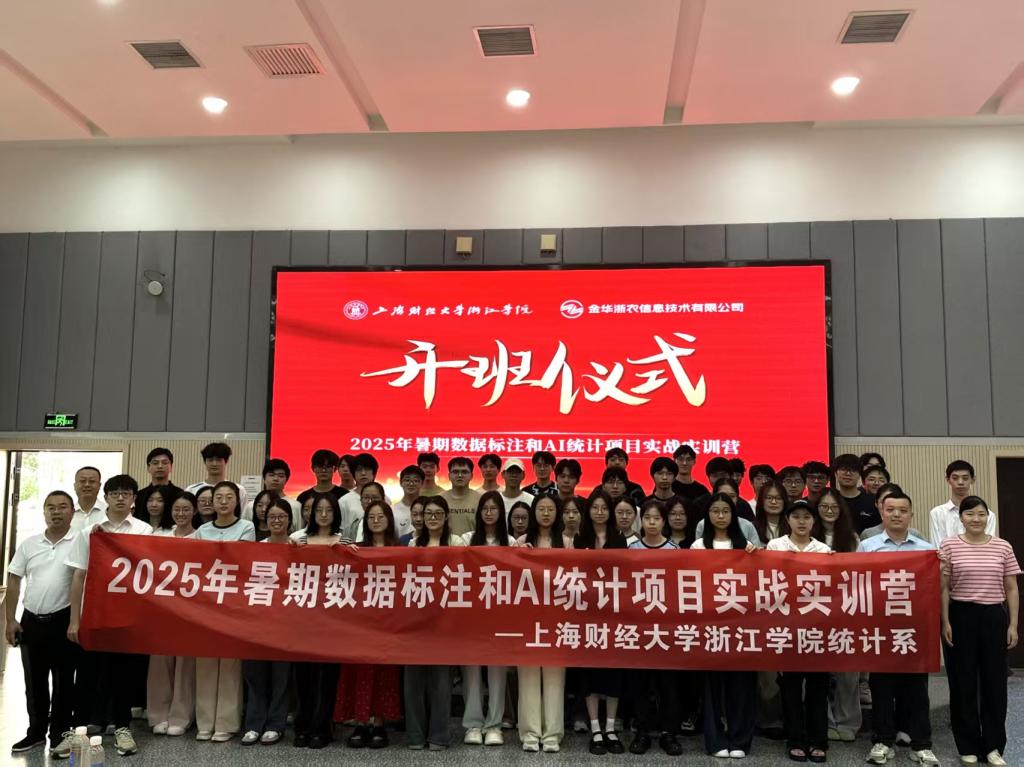 近日,星空官方端网站联合金华浙农信息技术有限公司,共同举办2025年暑期数据标注和AI统计项目实战实训营。金华浙农信息技术有限公司总经理郑永富及相关技术骨干,统计系负责人武斌及相关教师,以及全体参训学生共同出席开营典礼。