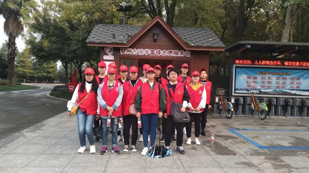 我系多名志愿者参与维护城市环境和秩序的志愿活动,这些行动在为金华文明建设尽一份力。在这将近四小时里,志愿者们维护游客秩序、规范电瓶车停放、景区路口斑马线的交通劝导和岗亭值守为游客指路。在此期间,志愿者们践行环保理念,劝导城市公民文明出行。