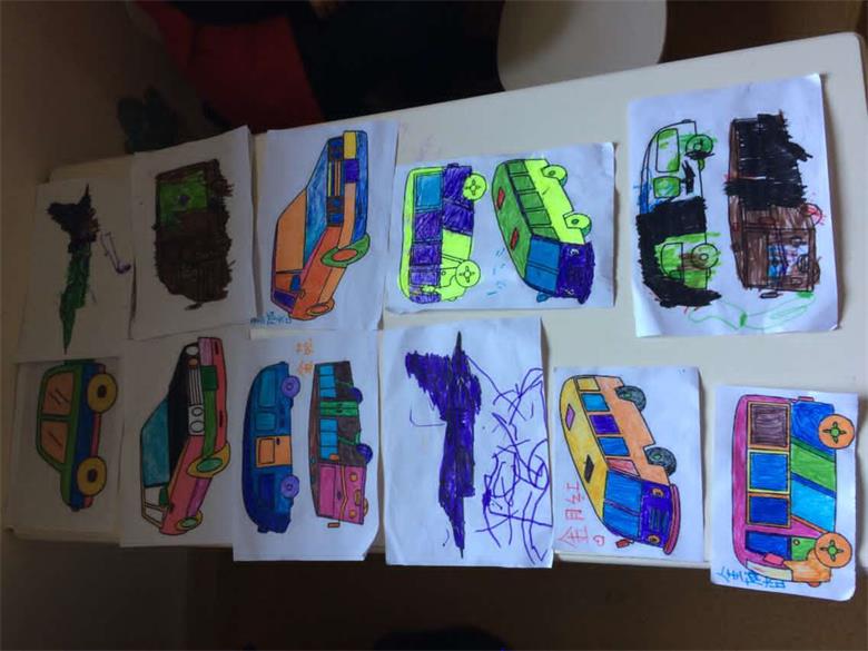 志愿者们发下有关交通工具的填色图片,孩子们积极地参与到活动中,发挥自己的想象,给交通工具图片填上颜色,最后都交出了自己满意的作品。填色完成后,志愿者教孩子们唱起了儿歌,教室里充满了孩子们的歌声,志愿者们能够明显感受到孩子心中的愉悦。