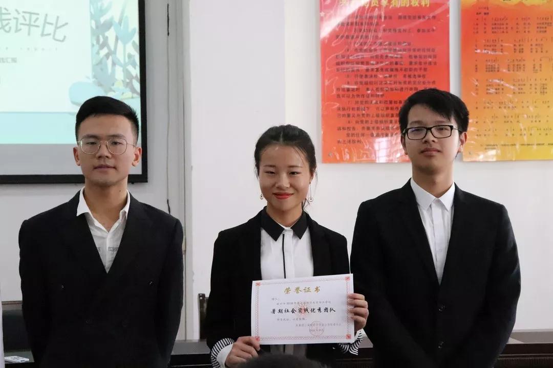 在现场答辩环节中,我系代表胡俏婷、刘超和吴博超三位同学配合默契,完美的回答了评委提出的问题。最终,我系荣获暑期社会实践优秀团队!