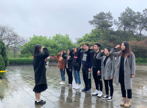 随后由学生党员徐帆领誓,在纪念碑下重温入党誓词,并庄严承诺将努力学习,继承和发扬革命先烈的遗志,为祖国的建设和发展奉献自己的青春和热血。