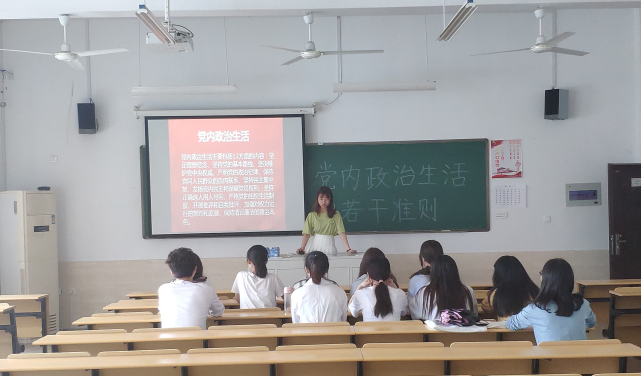 为加强学生党员的教育,提高党员素质,增强党性,促进党员发挥先锋模范作用,保持党组织的先进性和纯洁性,统计系学生党支部于2019年5月16日在7-406开展以“解读《关于新形势下党内政治生活的若干准则》”为主题的统学说。本次统学说由预备党员胡俏婷同志主持。