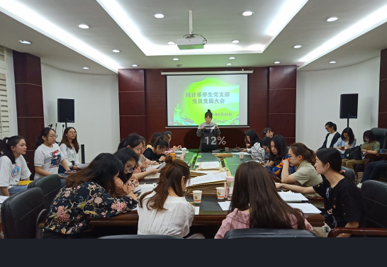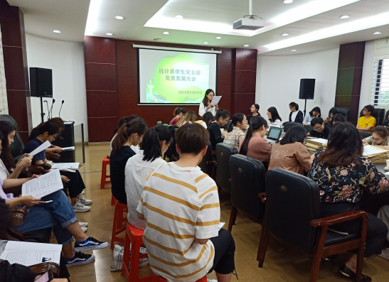 2019年5月20日18:30,统计系学生党支部在28幢226会议室召开2019年上半年党员发展大会。参加会议的有统计系党总支副书记吴京京老师、统计系学生党支部书记韩丹华老师、全体学生党员和虞淑文等十二名发展对象。