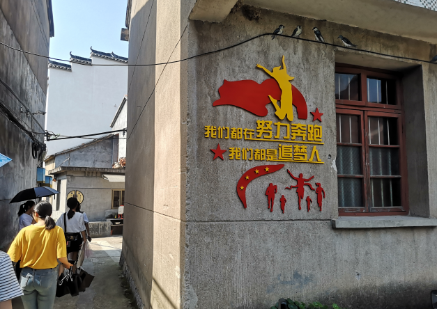 导游带领着大家欣赏独属于琐园的传统文化、家族家训,还向学生细细解读了那历经多年的红色故事。从村里的小道走过,随处可见一些村民家门口贴着"党员之家",墙上写满了红色励志语录。
