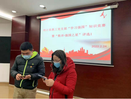 深入学习贯彻习近平新时代中国特色社会主义思想,做好“学习强国”学习平台的推广使用,创新学习形式,丰富学习载体,营造比学赶超、奋勇争先的良好学习氛围,2月24日下午,统计系教工党支部全体党员教师相聚一堂,开展了“学习强国”知识竞赛活动。